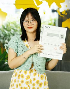 Tâm chia sẻ: “Trước đó mình cũng có tự ôn luyện tại nhà nhiều lần rồi nhưng học mãi mà chỉ loanh quanh band 6.0 – 6.5 thôi. Thêm nữa là Writing Skill của mình í ẹ vô cùng. Mình cứ viết mãi, chăm chỉ lắm luôn mà chẳng biết sai ở đâu để sửa nên sai vẫn hoàn sai. Mất nhiều thời gian mà chẳng có kết quả nên thôi quyết định đăng ký học ở trung tâm luôn. Có lộ trình cụ thể, thầy cô hướng dẫn chi tiết nên chỉ tầm 3.5 tháng mình tự tin hơn hẳn.