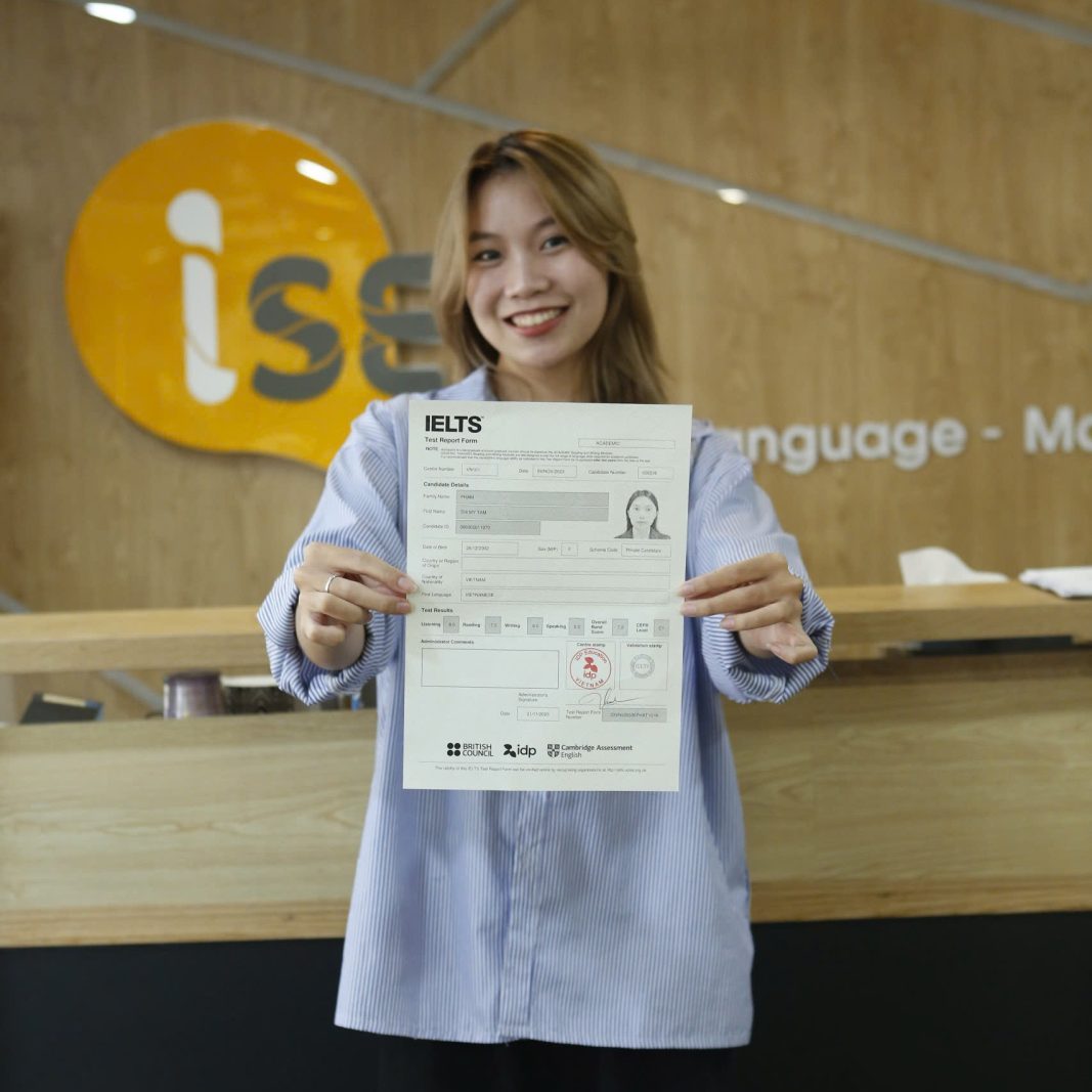 Mình rất thích môi trường và cách dạy của các thầy cô tại ISE. Mình thi sớm hơn dự kiến nhưng vẫn đạt được aim. Cám ơn ISE rất nhiều.
