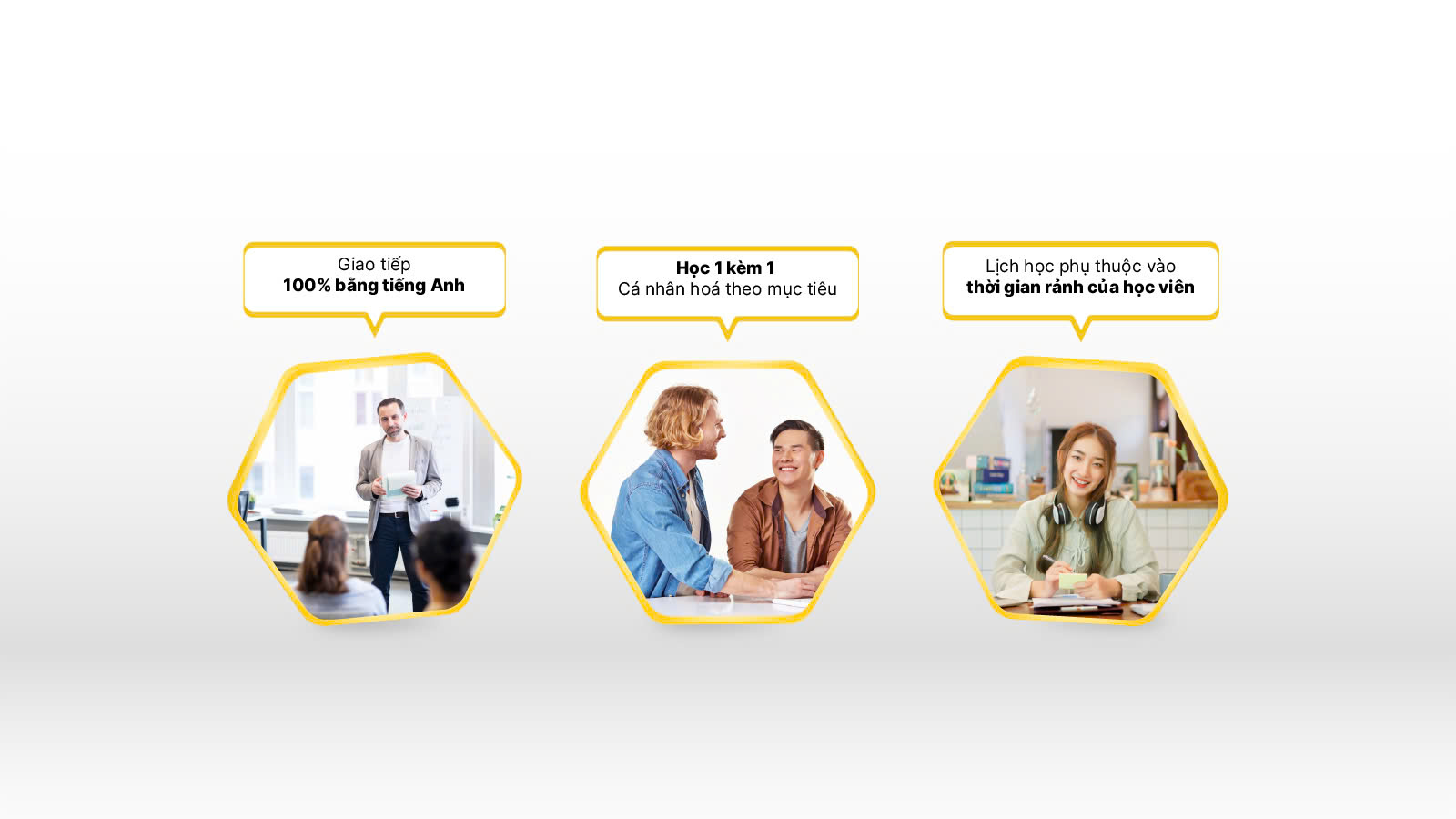 Với người bận rộn như anh thì học 1:1 giúp anh tiết kiệm được thời gian rất nhiều và đem lại tính hiệu quả cao khi được giao tiếp với giáo viên gần như 100% trong buổi học.
